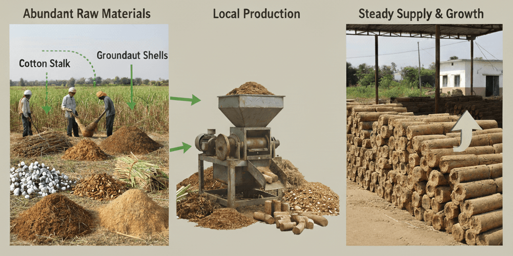 Since the raw materials are available locally year-round, briquette production remains steady. This reliability is one of the main reasons the number of biomass briquette manufacturers in Gujarat keeps increasing.